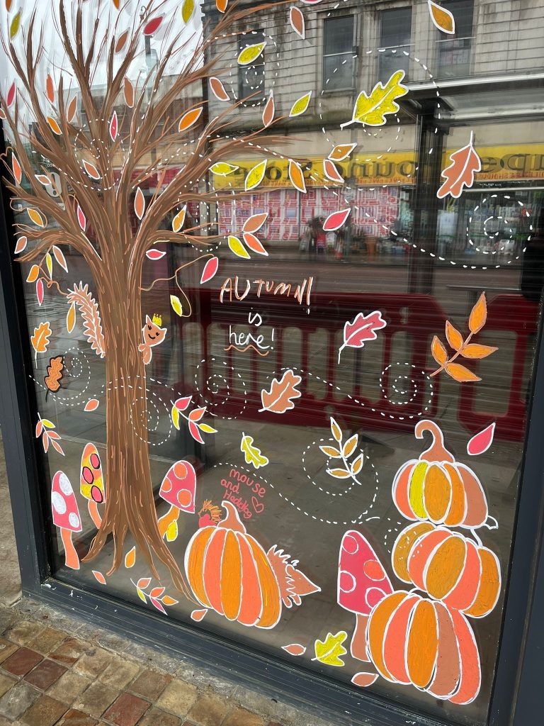 Autumn window art at Fourteen Market Street