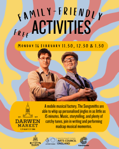 All activities are free to attend and are supported by funding from Arts Council England, Blackburn with Darwen Borough Council, and Blackburn & Darwen Markets.